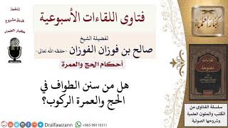 احسن الله اليكم صاحب الفضيلة وهذا السائل يقول هل من سنن الطواف في الحج والعمرة الركوب عن هل من سنن الطواف في الحج والعمرة الركوب الركوب في الطواف والسعي عند الحاجة - 00:00:00ضَ