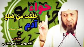 في صحيح مسلم من حديث ابي هريرة ان النبي عليه الصلاة والسلام قال استوصوا بالنساء خيرا فان المرأة خلقت من ضلع خلقت من ضلع. وهذا حديث في اعلى درجات الصحة. يبين ان حواء خلقت من اين؟ من ضلع - 00:00:01ضَ