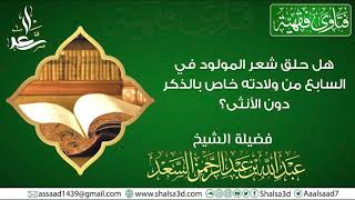 من السنة حلق رأس المولود وذلك في اليوم السابع. وهذا للذكر فقط وليس للانثى. لان الانثى جاء النهي عن الق شعرها كما جاء في حديث علي رضي الله عنه. نعم - 00:00:10ضَ