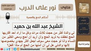 يقول في رسالته لي والده حجت اكثر من ثلاث مرات وكلما اراد احد اقاربها اقاربها الحج تعلقت به تريد الحج. وانا آآ اريد ان احج ومعي كثير من النساء وانا لو حجيت وانا لو حجت معي سوف اجعل اكثر جهدي بخصوصها لانها والدتي. هل لي ان امنعها من الحج لانها حج - 00:00:00ضَ