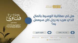 فهل لي حق المطالبة الوسيط بالمال واجباره على رده مع العلم انه ليس له ذنب اذا كنت اذا كنت تعلم انه اخذه وسيط وانه سيعطيه لشخص يعمل فيه لك الحق ان تطالبه - 00:00:31ضَ