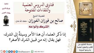 هل ما يذكر العلماء أنه وسيلة للشرك يعدّ من الشرك الأصغر؟ لمعالي الشيخ صالح الفوزان