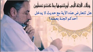 بعمله. قالوا ولا انت يا رسول الله؟ قال ولا انا الا ان يتغمدني الله برحمته. او كما قال طب هو الكلام ده الحديث ده مش بيتعارض مع الاية اتنين وسبعين اللي بتقول وتلك الجنة التي آآ اورثتموها وتلك الجنة التي اورثتموها بما كنتم - 00:00:28ضَ
