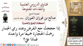 اذا حججت حجة الفرض وعند رمي الجمار رجمت الحجارة جميعا مرة واحدة فماذا علي؟ يعني رمى سبع جميع رمى سبع الحصيات جميع دفعة واحدة ما يجزيه الا عن حصاة واحدة - 00:00:00ضَ