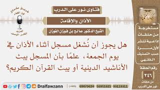 يسألون جمعا من الاسئلة في احدها يقولون هل يجوز ان نشغل المسجل اثناء الاذان في يوم الجمعة؟ علما بان المسجل يبث الاناشيد الدينية او يبث القرآن الكريم. الاستماع للمؤذن ومتابعته والاتيان بالذكر الذي بعده هذا افضل واكد - 00:00:00ضَ