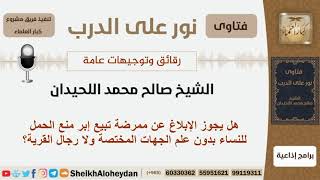 هل يجوز الإبلاغ عن ممرضة تبيع إبر منع الحمل للنساء بدون علم الجهات المختصة؟ اللحيدان - كبار العلماء