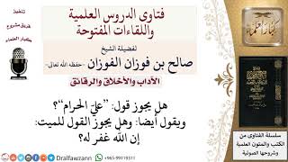 نعم احسن الله اليكم فضيلة الشيخ ويقول ايضا وهل يجوز قول القول للميت ان الله غفر له ها ان يقول للميت ان الله غفر له وش يدريه؟ نرجو للميت نرجو للميت المسلم نرجو له وندعو له - 00:00:21ضَ