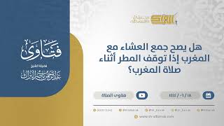 احسن الله اليكم. يقول السائل الايام السابقة وقت الامطار جمع بعض الائمة وقد وقف المطر في اثناء صلاة المغرب فهل فعلهم صحيح نرجو انه وقف وقفها يعني عربية يعني الان المطر في حكم مستمر. يعني ما هو بلازم انه في لحظة الجمع انه يكون - 00:00:00ضَ
