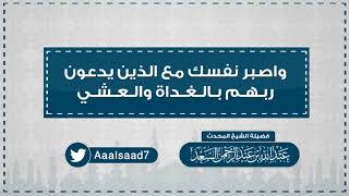 الموقع الرسمي لفضيلة الشيخ عبدالله بن عبد الرحمن السعد يقدم. والله جل وعلا ماذا قال في محكم التنزيل اصبر نفسك مع الذين يدعون ربهم بالغداة والعشي. اصبر نفسك ليس مع اهل كذا وكذا مع الذين يدعون ربهم - 00:00:00ضَ
