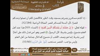 في الجماعة وان يحذر الصلاة وحده اذا كان يسمع النداء للصلاة. القصر في المشاعر المشهور عند العلماء ان هذا القصر خاص بالحجاج من اهل مكة فقط على قول من اجازه لهم - 00:23:07ضَ