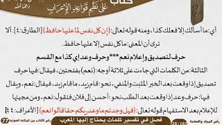 الا ترى ان المعنى ما كل نفس الا عليها حافظ حرف لتصديق واعلام النعم وحرف وعد اي كذا مع القسم الثالثة من الكلمات التي جاءت على ثلاثة اوجه نعم بفتحتين فيقال فيها حرف تصديق اذا وقعت بعد الخبر المثبت والمنفي - 00:08:05ضَ