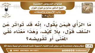 [101 -1024] ما الرأي فيمن يقول: إنه قد تواتر عن السلف قول: بلا كيف، وهذا معناه نفي المعنى أو تفويضه؟