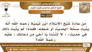 يقول فضيلة الشيخ وفقكم الله من عادة شيخ الاسلام ابن تيمية رحمه الله انه يثبت صحة الحديث او ضعفه. فلماذا لم يثبت ذلك في حديث لا تنسنا يا اخي من دعائك عليه رحمة الله. لان في مقال - 00:00:00ضَ
