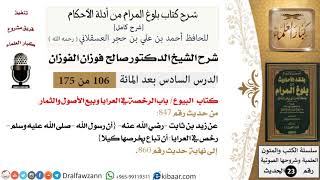 بسم الله الرحمن الرحيم. المكتبة الصوتية لمعالي الشيخ الدكتور صالح بن فوزان الفوزان. شرح كتاب بلوغ المرام من ادلة كامل الحافظ احمد ابن حجر العسقلاني رحمه الله. ادرس مائة وستة - 00:00:00ضَ