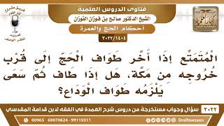 [1404 -3022] المتمتع إذا أخر طواف الحج إلى قرب خروجه من مكة، هل إذا طاف وسعى يلزمه طواف الوداع؟