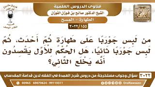 [155 -3022] من لبس جوربا على طهارة ثم أحدث ثم لبس جوربا ثانيا هل الحكم للأول يقصدون أنه يخلع الثاني؟