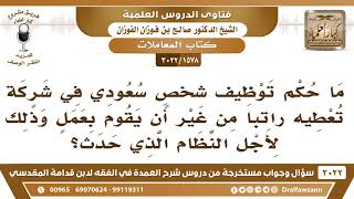 فضيلة الشيخ وفقكم الله يقول السائل ما حكم توظيف شخص سعودي في شركة تعطيه راتبا من غير ان يقوم بعمل. وذلك لاجل النظام الذي حدث. هذا كذب واحتيال ولا يجوز. وكيف تاكل المال هذا - 00:00:00ضَ