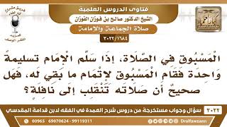 [1684 -3022] إذا سلم الإمام التسليمة الأولى وقام المسبوق لإتمام صلاته، فهل تنقلب صلاته إلى نافلة؟