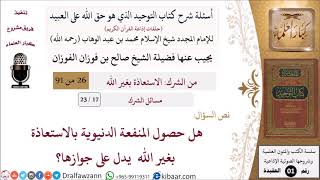 17 من 23|أسئلة شرح كتاب التوحيد|مسائل الشرك|حصول المنفعة الدنيوية بالاستعاذة بغير الله؟