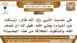 [177 -1024] في حديث النبي ﷺ أنه قال: (وسكت عن أشياء) يعني الله، فهل لنا أن نصف الله بالسكوت؟