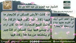 اذا كانت الارض للسكن او للاجار ما فيها زكاة انما تكون فيها الزكاة اذا كانت للبيع للتجارة اما اذا كان اراد ان يبني فيها بيتا بالسكن او للتأجيل او يتخذها مزرعة فلا زكاة فيها - 00:00:18ضَ