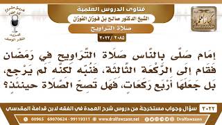 [2085 -3022] إمام قام في التراويح للثالثة فنبهه المصلون فلم يرجع، وجعلها أربع ركعات، فهل تصح صلاتنا؟