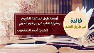 ثعلب ما فقدت ابراهيم الحربي في مجلس نحو ولا لغة اكثر من خمسين سنة مع ان ابراهيم الحربي رحمه الله تعالى كان مع علمه بالنحو واللغة كان عالما من علماء الحديث. ومع ذلك كان - 00:00:29ضَ
