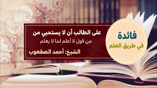 وكذلك ايضا ينبغي للطالب اذا سئل عن شيء لا يعلمه الا يستحي من قوله لا اعلم او لم افهم او لا احفظ فان هذا مما ينبغي الا يستحيا منه. والنبي صلى الله عليه وسلم - 00:00:01ضَ
