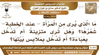 احسن الله اليكم فظيلة الشيخ هذا سائل يقول ما الذي يرأى من المرأة شعرها؟ وهل ترى متزينة ان تدخلوا بعباءة؟ ام تدخلوا بملابس بيتها؟ تستر نفسها ولا تبدي الا وجهها - 00:00:00ضَ