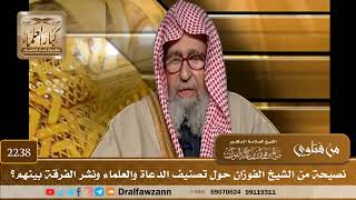 2238 - نصيحة من الشيخ الفوزان حول تصنيف الدعاة والعلماء ونشر الفرقة بينهم؟ - الشيخ صالح الفوزان