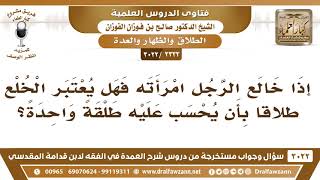 فضيلة الشيخ وفقكم الله اذا خلع الرجل امرأته فهل يعتبر الخلع طلاقا بان يحسب عليه طلقة واحدة الخلع ليس صريح الطلاق. يقع به طلقة واحدة. نعم اعداد مشروع كبار العلماء بالكويت اعزها الله بالتوحيد والسنة - 00:00:00ضَ