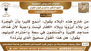 فضيلة الشيخ وفقكم الله يقول السائل من خارج هذه البلاد يقول اسمعوا كثيرا بان الهجرة من بلاد اوروبا وبلاد الكفار ليست واجبة. لان هناك مساجد كثيرة والمسلمون في سعة واحترام لدينهم. يقول هل هذا القول صحيح الذي يتردد؟ لا ما هو بصحيح الهجرة واجبة - 00:00:00ضَ
