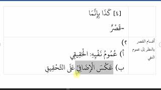 يكن عرفنا به منفيا محددا. هذا المحدد قد يكون كثيرا وقد يكون قليلا لكنه محدد بخلاف النفي العام كما قلنا في لا يعلم الغيب الا الله. ومن القصر الحقيقي ايضا اياك نعبد - 00:03:20ضَ