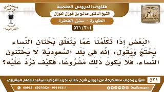 [304 -521] يحتج البعض على عدم مشروعية ختان المرأة بأن دولة السعودية لا يختنون النساء، فكيف الجواب؟