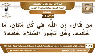 تقول فضيلة الشيخ وفقكم الله من قال ان الله في كل مكان ما حكمه؟ وهل تجوز الصلاة خلفه؟ هذا كافر هذا حلولي اللي يقول ان الله في كل مكان هذا حلولي كافر - 00:00:00ضَ