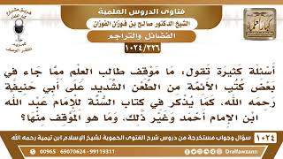 فضيلة الشيخ وفقكم الله. اسئلة كثيرة تقول ما موقف طالب العلم مما جاء في بعض كتب الائمة من الطعن الشديد على ابي حنيفة رحمه الله. كما يذكر في كتاب السنة للامام عبد الله ابن الامام احمد وغير ذلك - 00:00:00ضَ