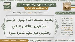 [3622- 4717] هل يسجد الإمام للسهو إذا نسي الجهر بالتكبير للركوع والسجود؟ - الشيخ صالح الفوزان
