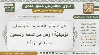 [3965- 4717] هل أسماء الله تعالى توقيفية وهل هي تسعة وتسعون اسما أم أكثر؟ - الشيخ صالح الفوزان