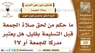 4070- من أدرك صلاة الجمعة قبل التسليم، هل يعد مدركا لصلاة الجمعة؟ - الشيخ صالح الفوزان