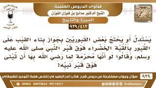 [412 -939] يحتج بعض القبوريين بجواز بناء القبب على القبور بالقبة الخضراء فوق قبر النبي ﷺ!