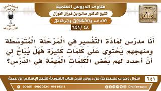 [48 /641] هل يجوز لمدرس التفسير أن يحدد للطلاب الكلمات المهمة بدلا من المقرر كاملا؟ صالح الفوزان