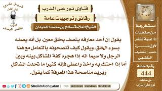 قل ان احد معارفه يتصف بخلق معين. بل انه يصفه بسوء الخلق ويقول كيف تنصحونه بالتعامل مع هذا الرجل. ولا سيما انه اذا هجره كفة المشاكل بينه وبين اما اذا احتك به واخذ واعطى فانه كثيرا ما تحدث المشاكل ويريد مناصحة هذا المعرفة كما يقول - 00:00:00ضَ