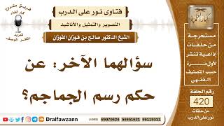 سؤالهما الاخر عن حكم رسم الجماجم. رسم الوجه لا يجوز لان الصورة هي الوجه. فاذا كان فيه ملامح الوجه المعروفة من العينين والفم والانف وهذا لا يجوز لان هذا هو الصورة المنهي عنها اما اذا كان مجرد رسم بدون ملامح الوجه وانما هو مطموس فلا بأس به - 00:00:00ضَ