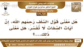 [631 -939] هل قال السلف رحمهم الله: إن آيات الصفات لا تفسر؟ - الشيخ صالح الفوزان