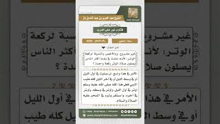 الوتر ركعة واحدة افيدونا سماحة الشيخ. الامر في هذا واسع. ان صليت في اول الليل او في وسط الليل او في اخر الليل كله طيب. النمثة على هذا كله صلى الله عليه وسلم او ترى في اول الليل او ترى في وسطه واوتر في اخره. واستقر وتره بالسحر عليه الصلاة والسلام - 00:00:20ضَ