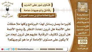 صالح كثيرا ما يصل رسائل الى هذا البرنامج وكلها ملاحظات على الائمة. هل ترون اعادة النظر في الائمة هل ترون تكثيف الرقابة عليهم؟ هل ترون ابعاد من لا يكون على مستوى الامامة؟ او ما هو توجيهكم - 00:00:00ضَ