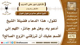 تقول هذا الدعاء فضيلة الشيخ ادعو به وهل هو جائز اللهم اني اقسم عليك ان ترزقني زوج صالح؟ الاقسام على الله بان في انه سبحانه وتعالى يفعل الخير ويعطي الخير هذا من حسن الظن بالله عز وجل لا بأس به لو اقسم على الله ان من عباد الله من لا اقسم على الله - 00:00:00ضَ
