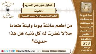 7048 - صحة الحديث من أطعم عائلة يوما وليلة طعاما حلالا غفرت له كل ذنبه - نور على الدرب