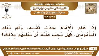 [707 -3022] إذا أحدث الإمام أثناء صلاته، هل يجب عليه أن يُعْلم المأمومين؟ - الشيخ صالح الفوزان