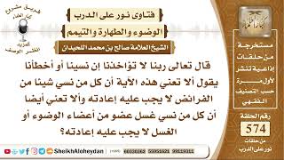 سؤاله الاخر يقول قال تعالى ربنا لا تؤاخذنا ان نسينا او اخطأنا يقول الا تعني هذه الاية ان كل من نسي شيئا من الفرائض لا يجب عليه اعادته والا تعني ايضا ان كل من نسي غسل عضو من اعضاء الوضوء او - 00:00:00ضَ